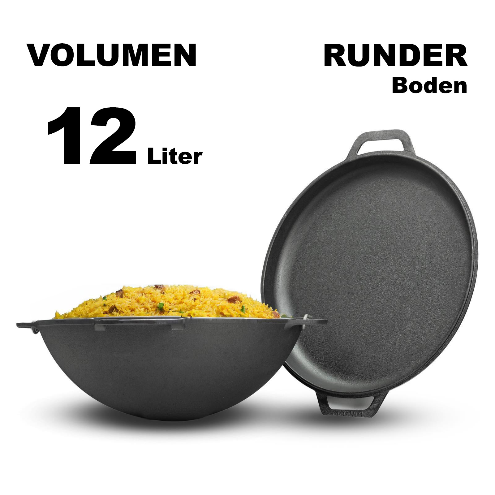 Im Unterschied zu den klassischen Woks, speichert ein dickwändiger gusseiserner Kazan die Energie für lange Zeit und kann sowohl fürs Schmorren als auch fürs Anbraten von Fleisch und Gemüse verwendet werden.