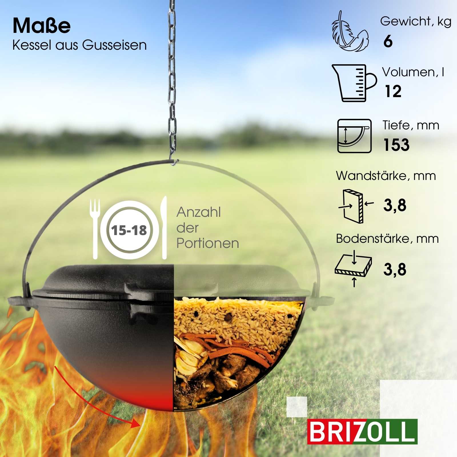 Kazan und Deckel bestehen zu 100% aus reinem Gusseisen.