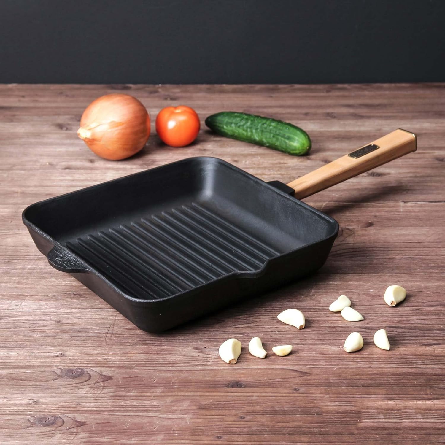 Grillpfanne aus Gusseisen mit Holzgriff
