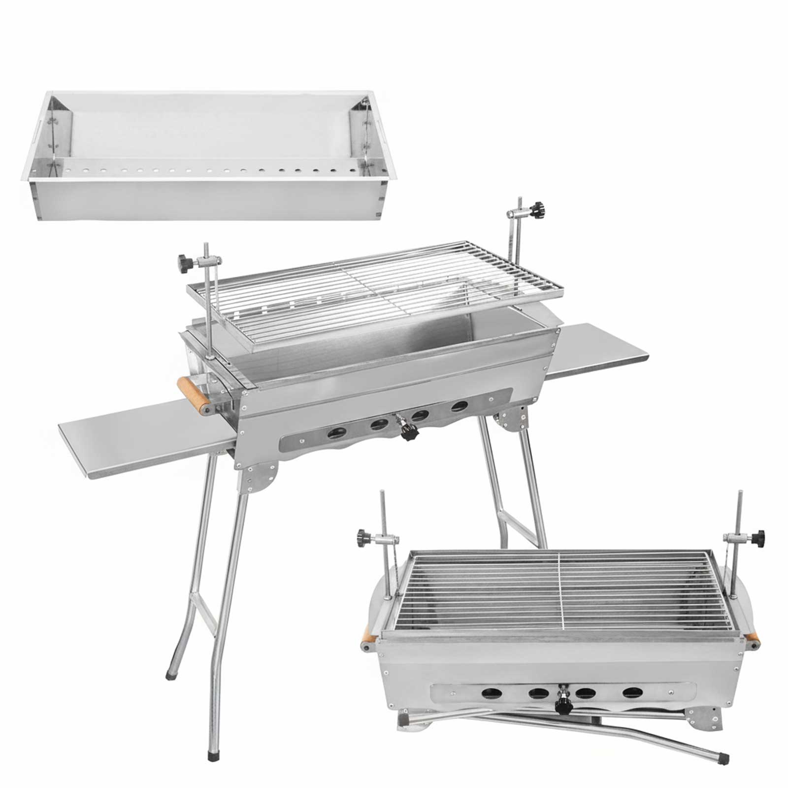 Praktische Funktionen: Höhenverstellbarer Grillrost und klappbares Design für einfachen Transport und platzsparende Lagerung.