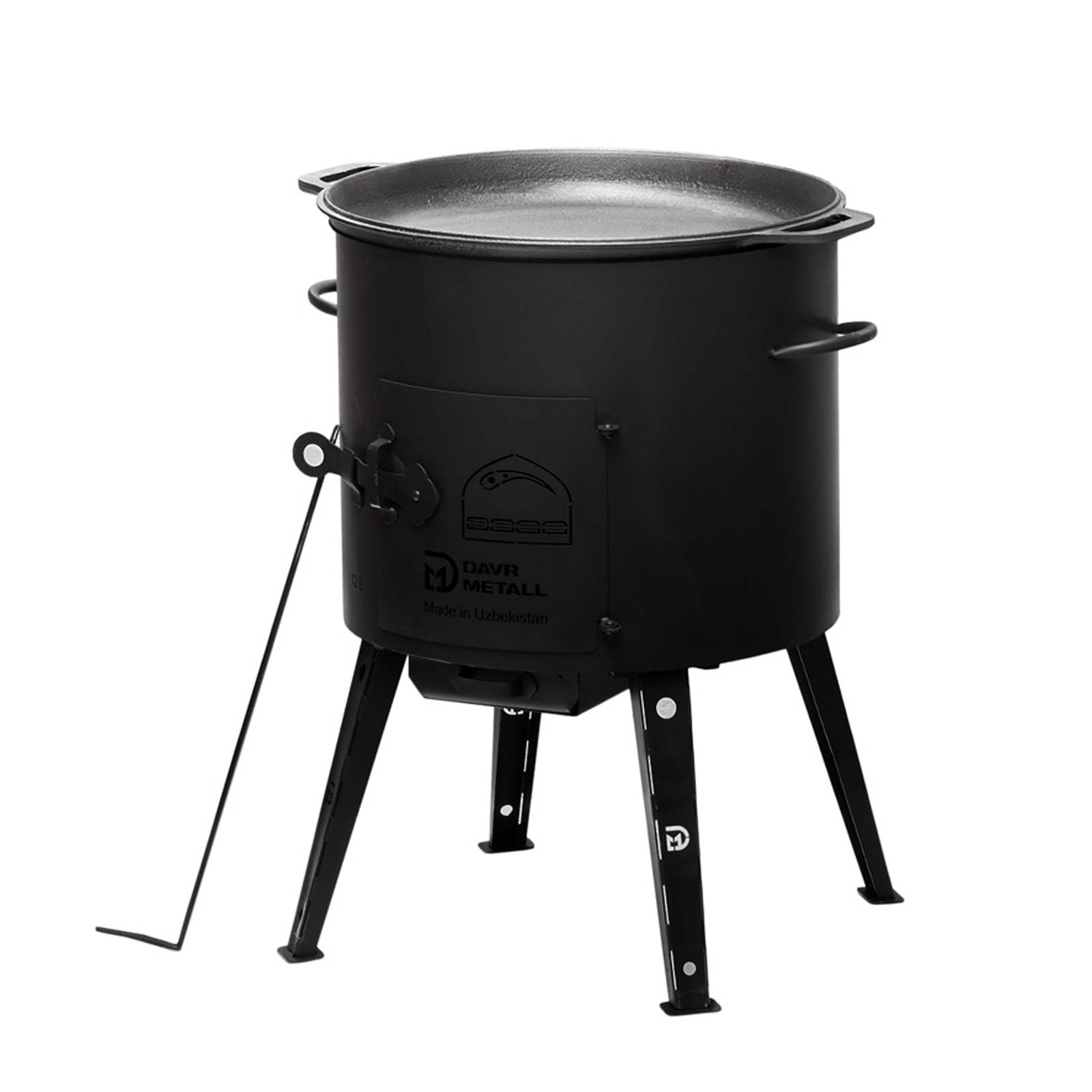 Ø36 Uchag mit 10L Kazan Utschak Utschag 2mm stahl Kessel mit Deckel-Bratpfanne aus Gusseisen Kasan Feuerstelle Feldküche