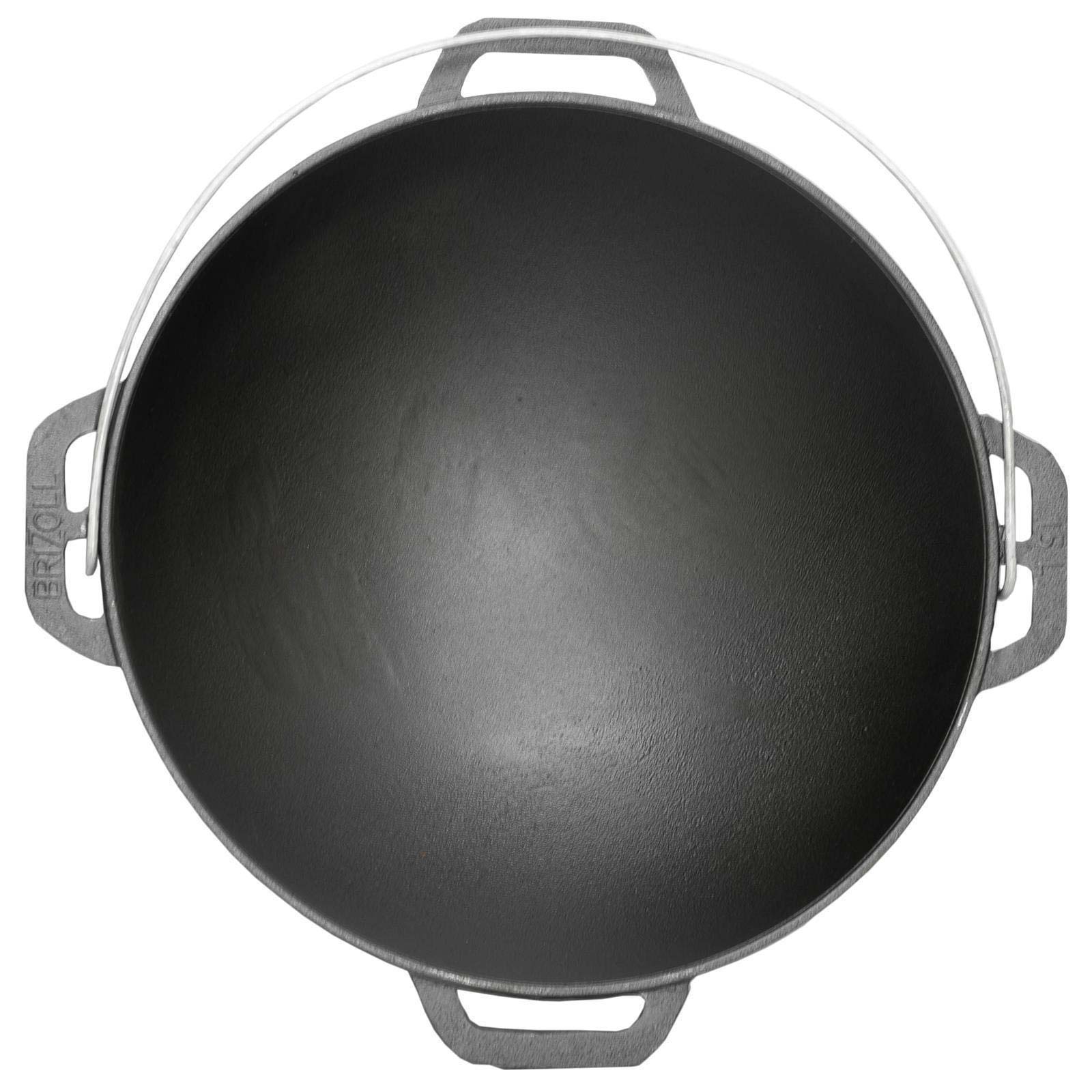 Im Set ist auch ein Kessel aus Gusseisen enthalten, der dem Feuerplatz zusätzliche Funktionalität verleiht. Gusseisen eignet sich hervorragend zum Kochen verschiedener Gerichte, dank seiner gleichmäßigen Erwärmung und Wärmespeicherung. Der Kessel eignet sich zum Dünsten, Braten, Kochen und anderen Kochmethoden.