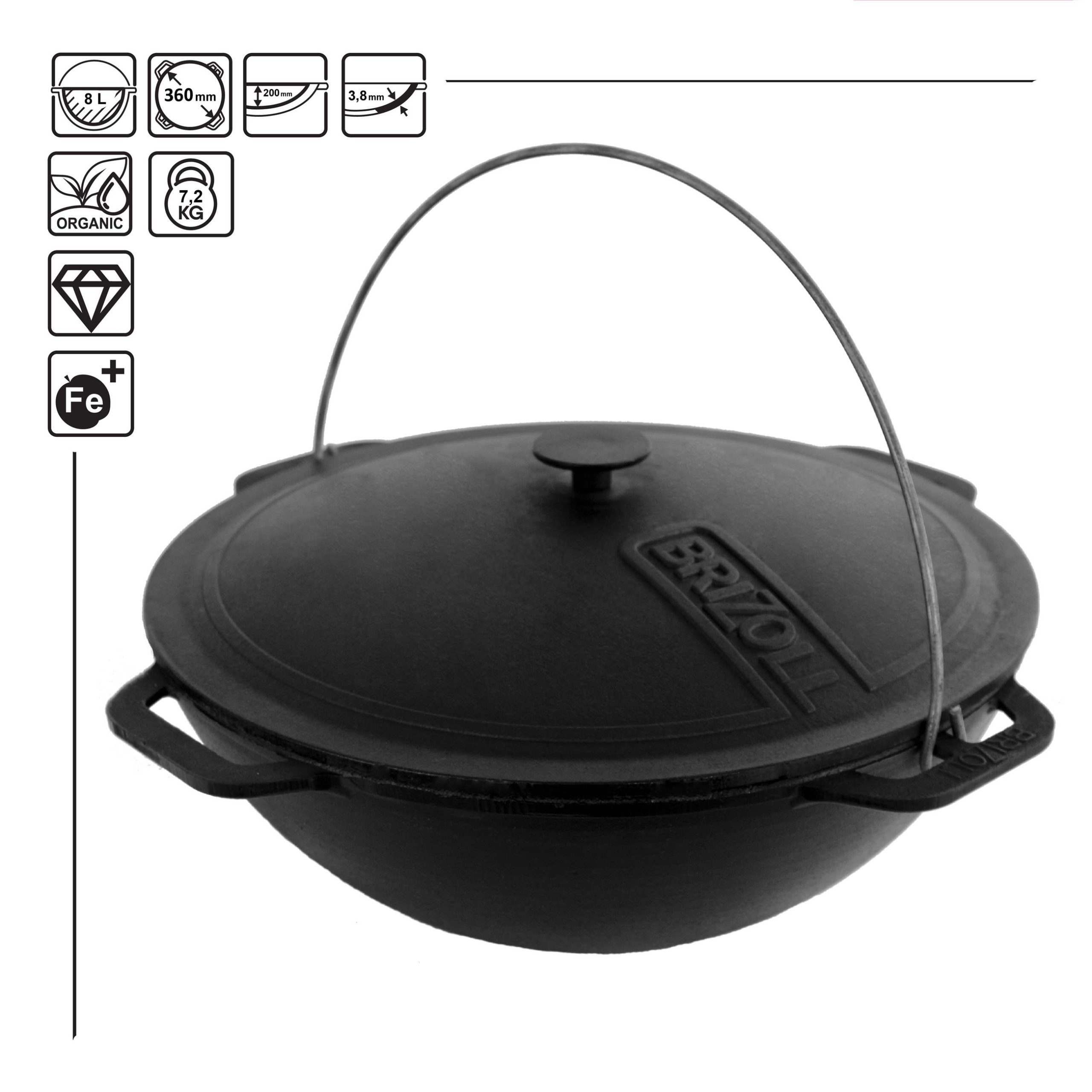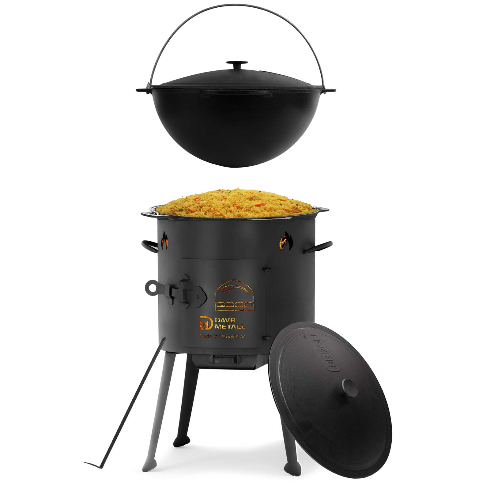 Ø36 Uchag mit 8L Kazan Utschak Utschag 2mm stahl Kessel mit Deckel aus Gusseisen Kasan Feuerstelle Feldküche