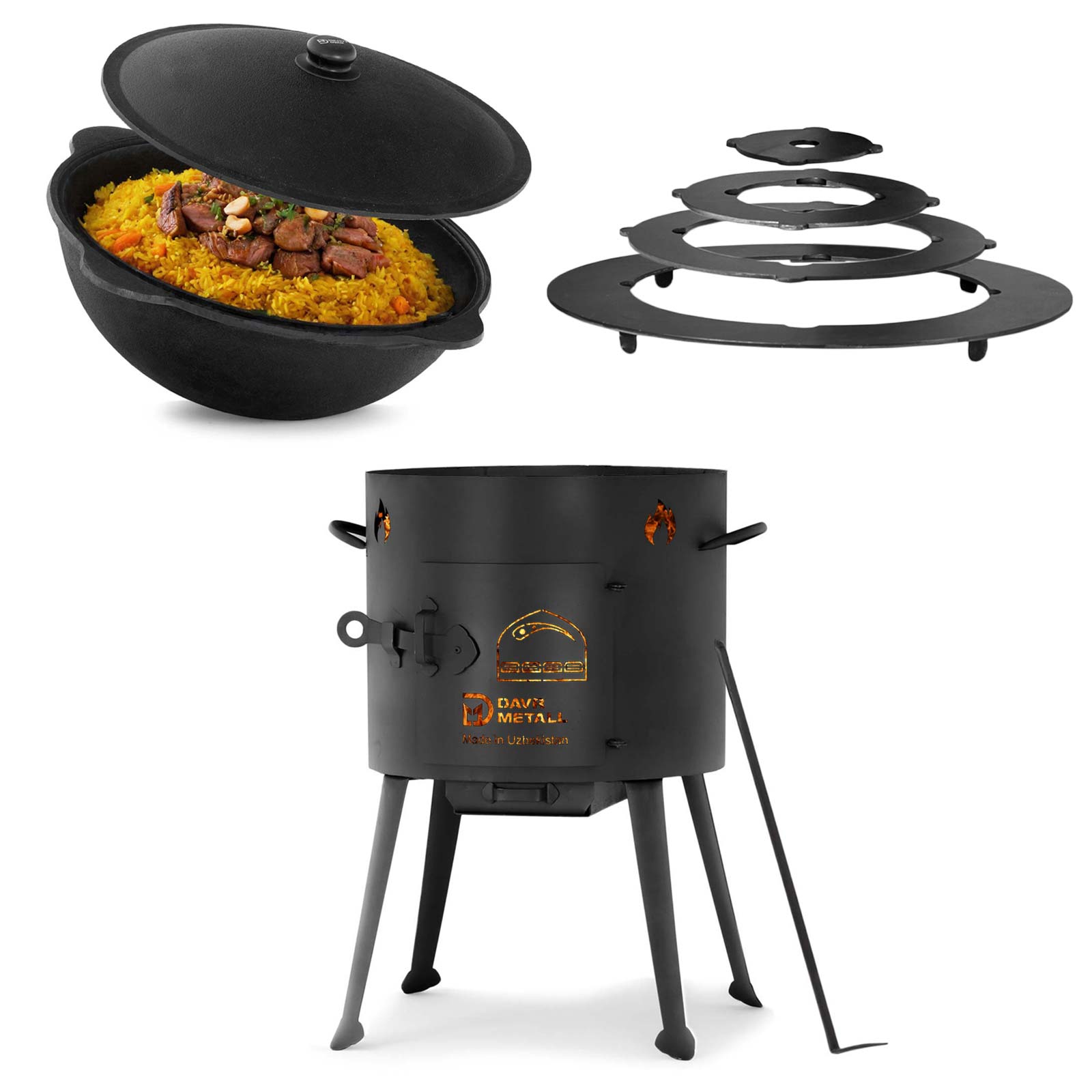 Ø36cm Uchag 2mm Stahl Utschak-Ofen Adapter-Ringe 10L Kazan rund Kasan Kessel Utschag Feldküche Feuerstelle Campingofen Außenküche Eintopfofen